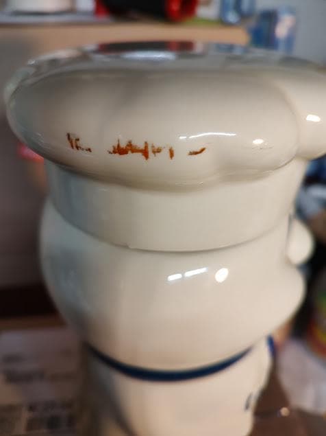 This is the last one I have for now, and it has something on the side of his hat. I could not get it off, so he's reduced by 20 dollars. An original Doughboy made in the 70's, it's a great collectors jar. Will be packaged carefully.