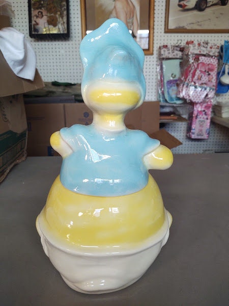 A wonderful Gerd's Baby Huey ceramic cookie jar, in awesome condition. A real favorite with collectors, this one is priced right and ships well packaged. Compare elsewhere, this is a deal.