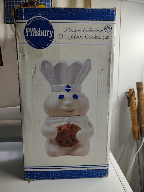 A mint in the box, Pillsbury Doughboy with a cookie, cookie jar. In great condition and it ships free. Makes a great gift.