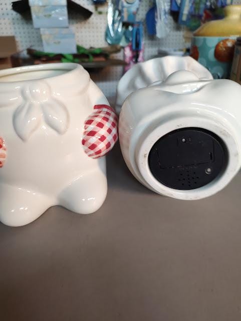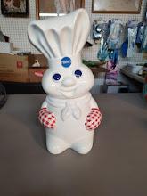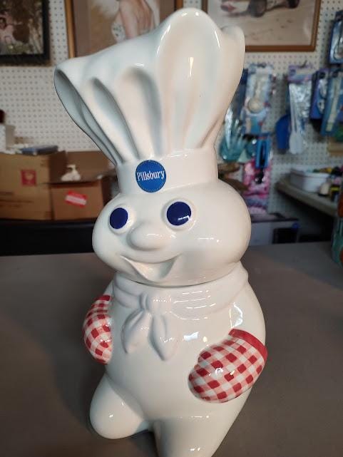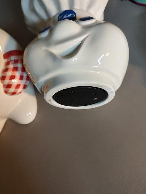 A rare, wonderful, Pillsbury Doughboy Chef Giggling ceramic cookie jar from Pillsbury. This hard to find 14" tall jar was made in 2003 and is in great condition without the box. Sound works and he Ships free !