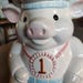 Not perfect, but nice and bright. Santa's Cookies ceramic cookie jar for the holidays. 9" tall, and 8" wide, and has the freshness seal. This jar ships free.