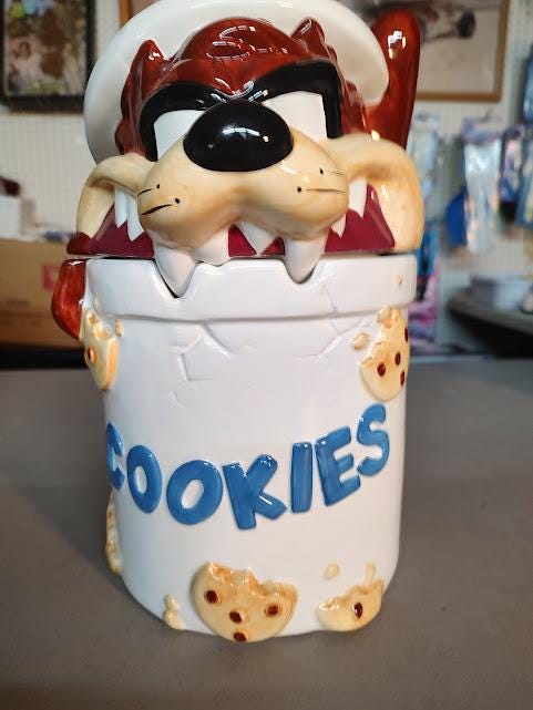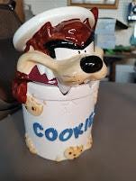 A very nice, Taz ceramic cookie jar from Looney Tunes. This Warner Bros jar is from 1994 and looks unused and ships free. Nice !