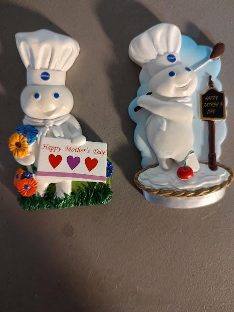 Hard to find Pillsbury Doughboy Mother's Day and Father's Day magnets. In great condition and they ship free.