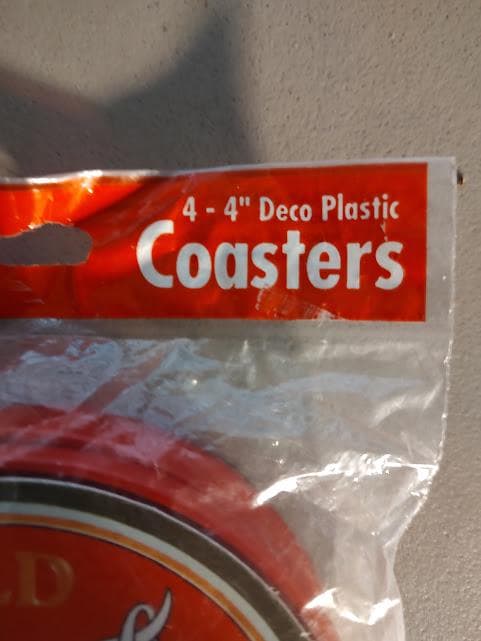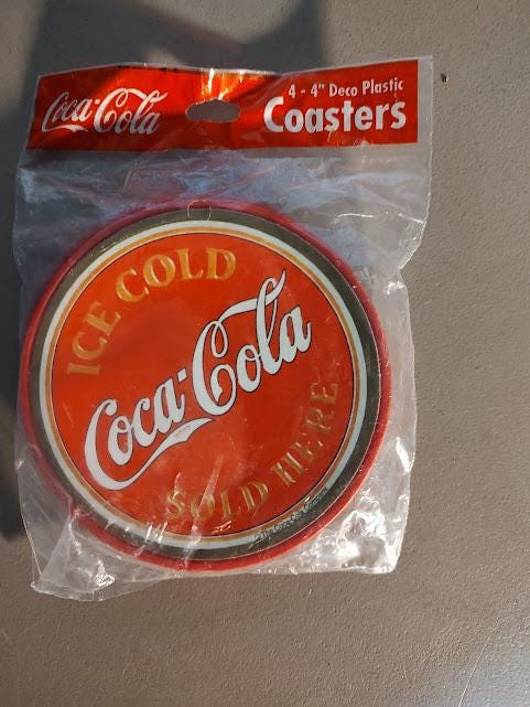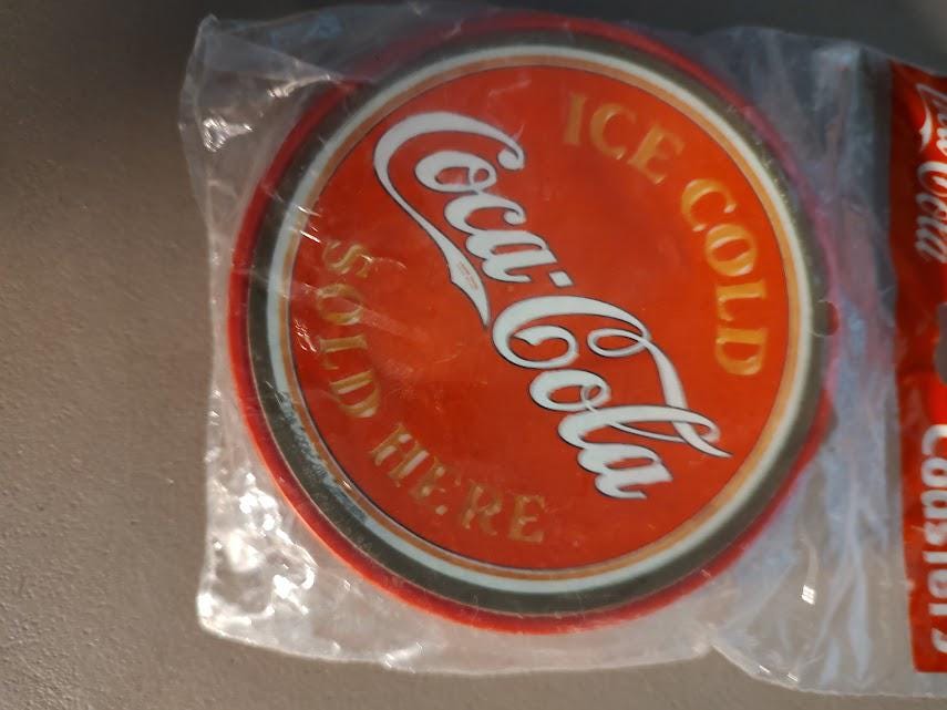 A set of 4 Coca Cola plastic coasters still new in the package from the 1990's. Made in the USA and they ship free.