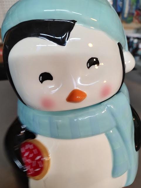 A nice, ceramic cookie jar from Cheryl's Cookies. Stands 12" tall and ship free.