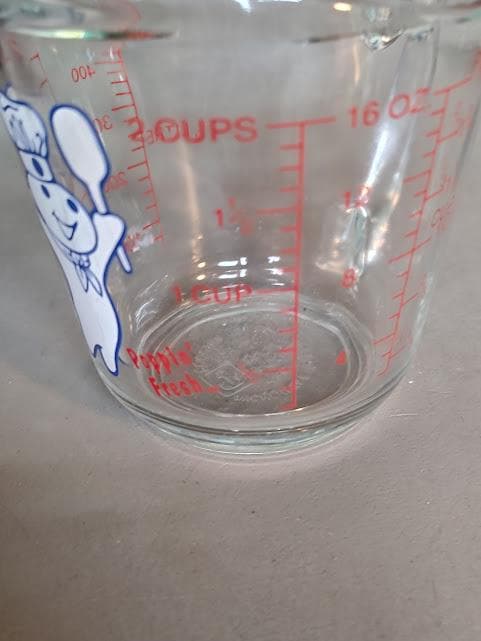 I don't find these very often. A full size, 2 cup, glass, Doughboy measuring cup. In great condition and it ships free.