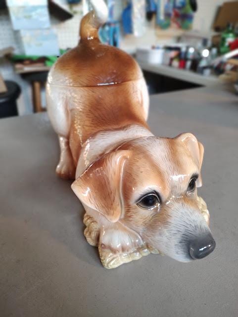 A great looking " Ranch Rascal" ceramic cookie jar from Montana Silversmiths. (yes, they have made cookie jars). This awesome jar measures 10" tall, 13" long , and 7" wide and has the freshness seal. You'll love this one, and it ships free.