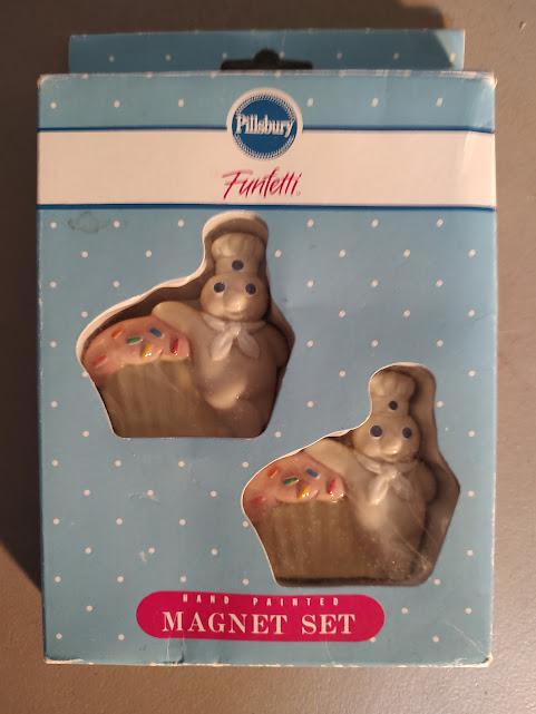 2 new in the box, Pillsbury Doughboy 2 1/2" Funfetti magnets from Benjanmin and Medwin from 1991. Ships free.