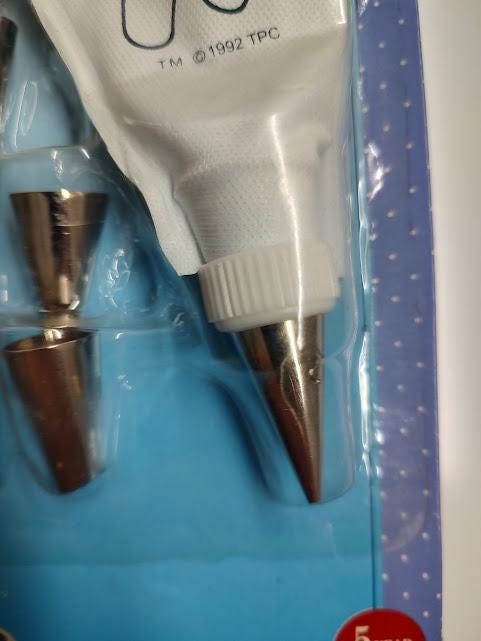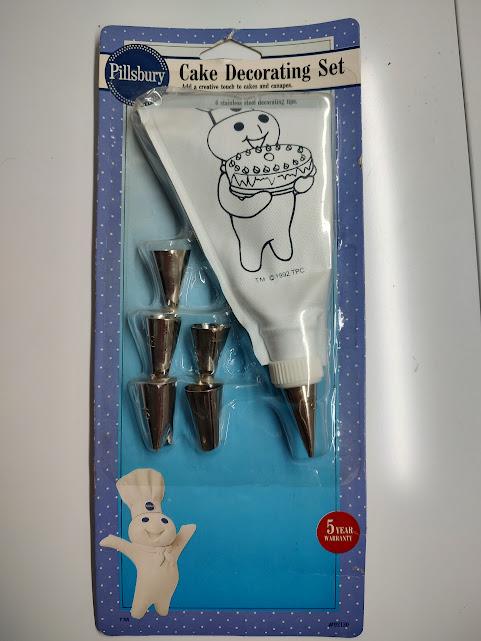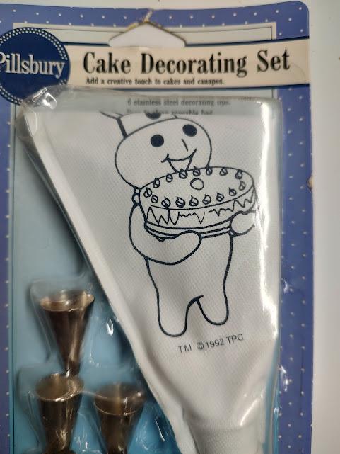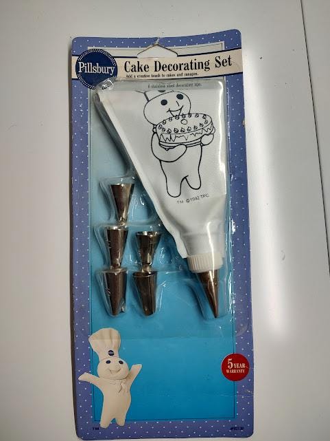A still new in the package, Pillsbury Doughboy cake decorating set, from 1992. Instructions on the back of package, this hard to find set ships to you free.