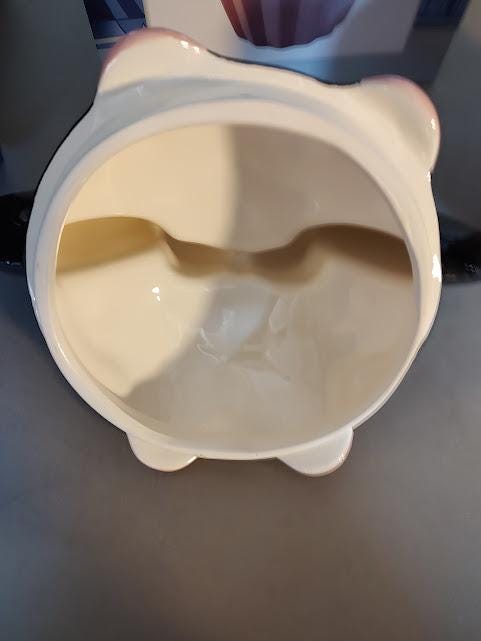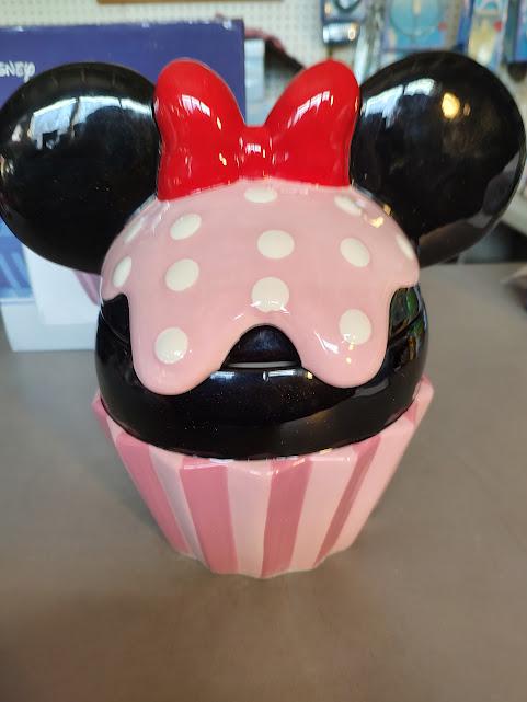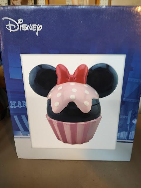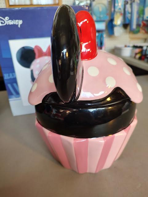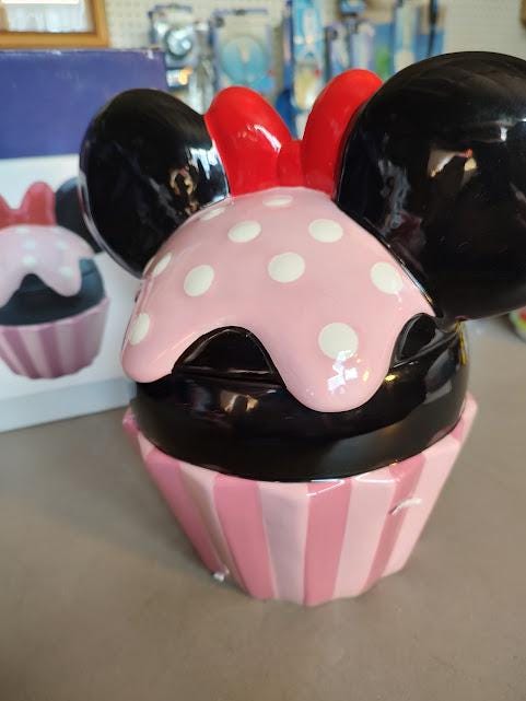 A still new in the box, Minnie Mouse cupcake ceramic cookie jar from Westland Giftware. Stands 10" tall and ships free.