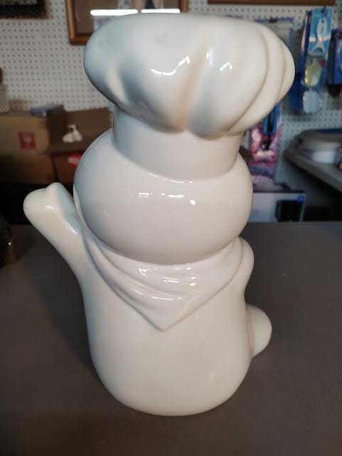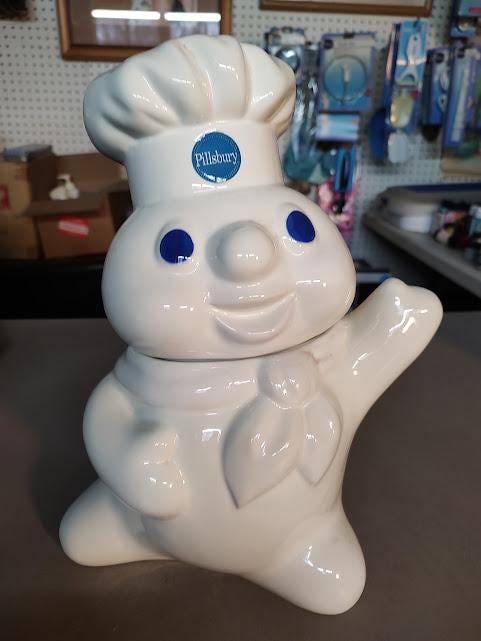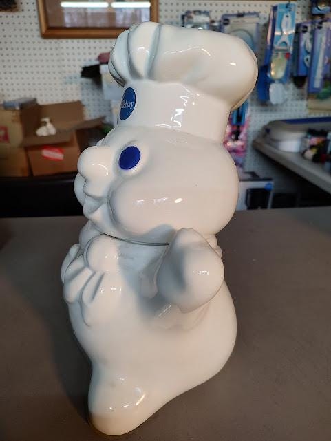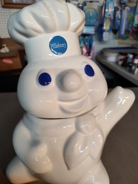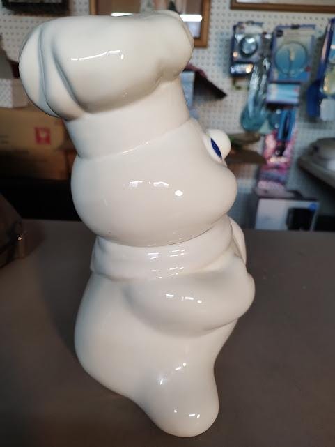 Pillsbury Doughboy 13" tall ceramic cookie jar, from Benjamin and Medwin. Looks great and ships free.