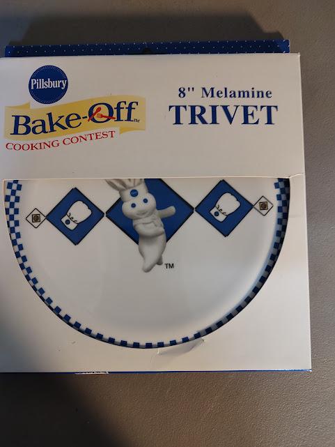A still new in the box, Pillsbury Doughboy melamine trivet, from Restin Lloyd. Made in 2000 and ships free.