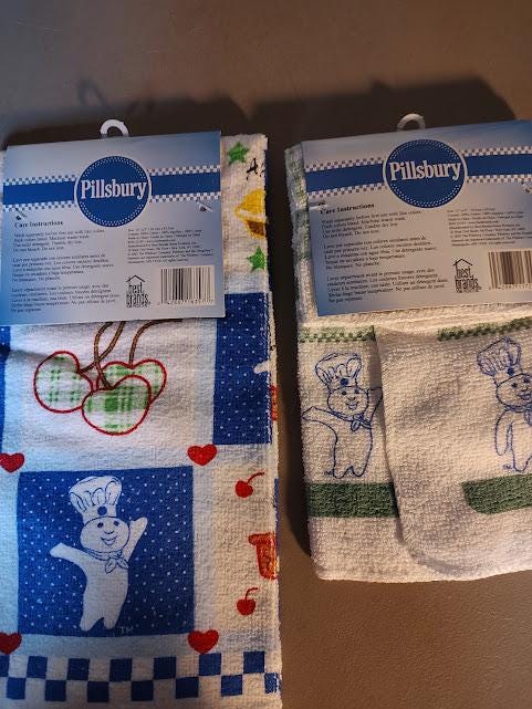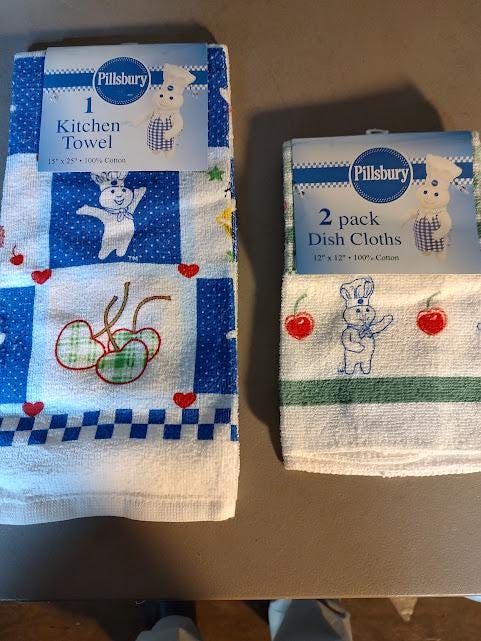 A new with tags Pillsbury Doughboy towel and 2 dish cloths. They ship free.