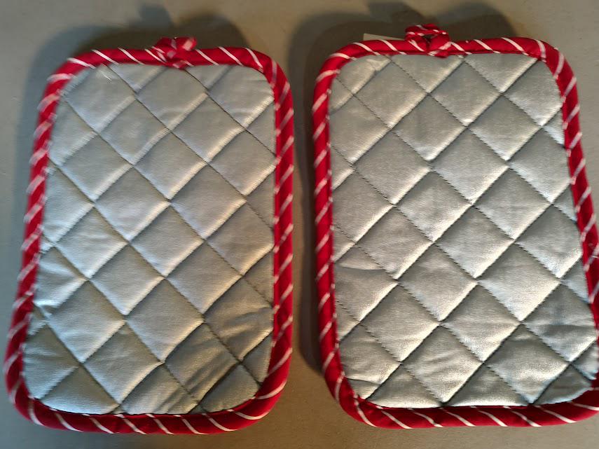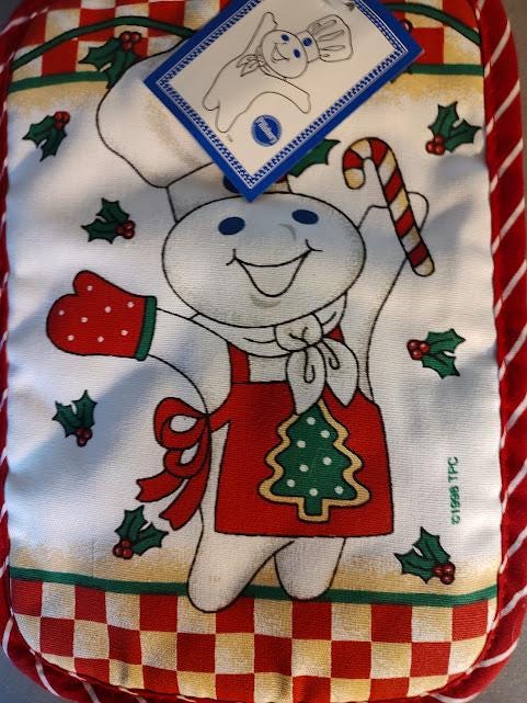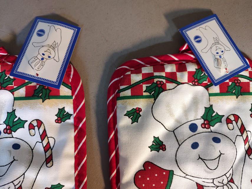 Two still new, Pillsbury Doughboy holiday pot holders with tags. They ship free.
