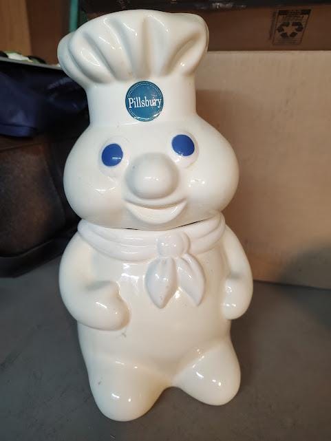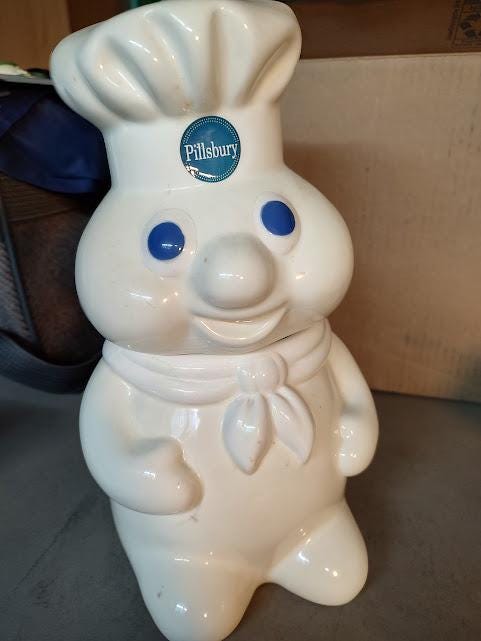 This Pillsbury Doughboy has a couple large dark crazing lines that look like cracks, but they're not. Looks decent unless you look close. Big discount and free shipping.