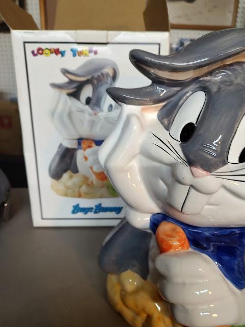Bugs Bunny ceramic cookie jar, mint in the box from Looney Tunes. Makes a great gift and ships free.