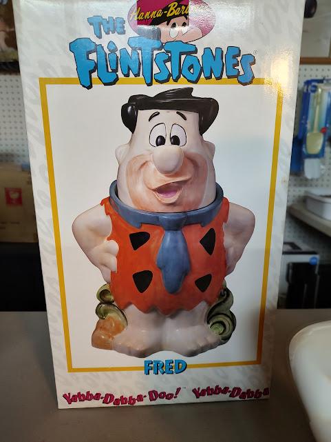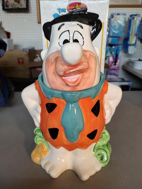 A very nice, new in the box, ceramic Fred Flintstone cookie jar from Hanna & Barbera.
