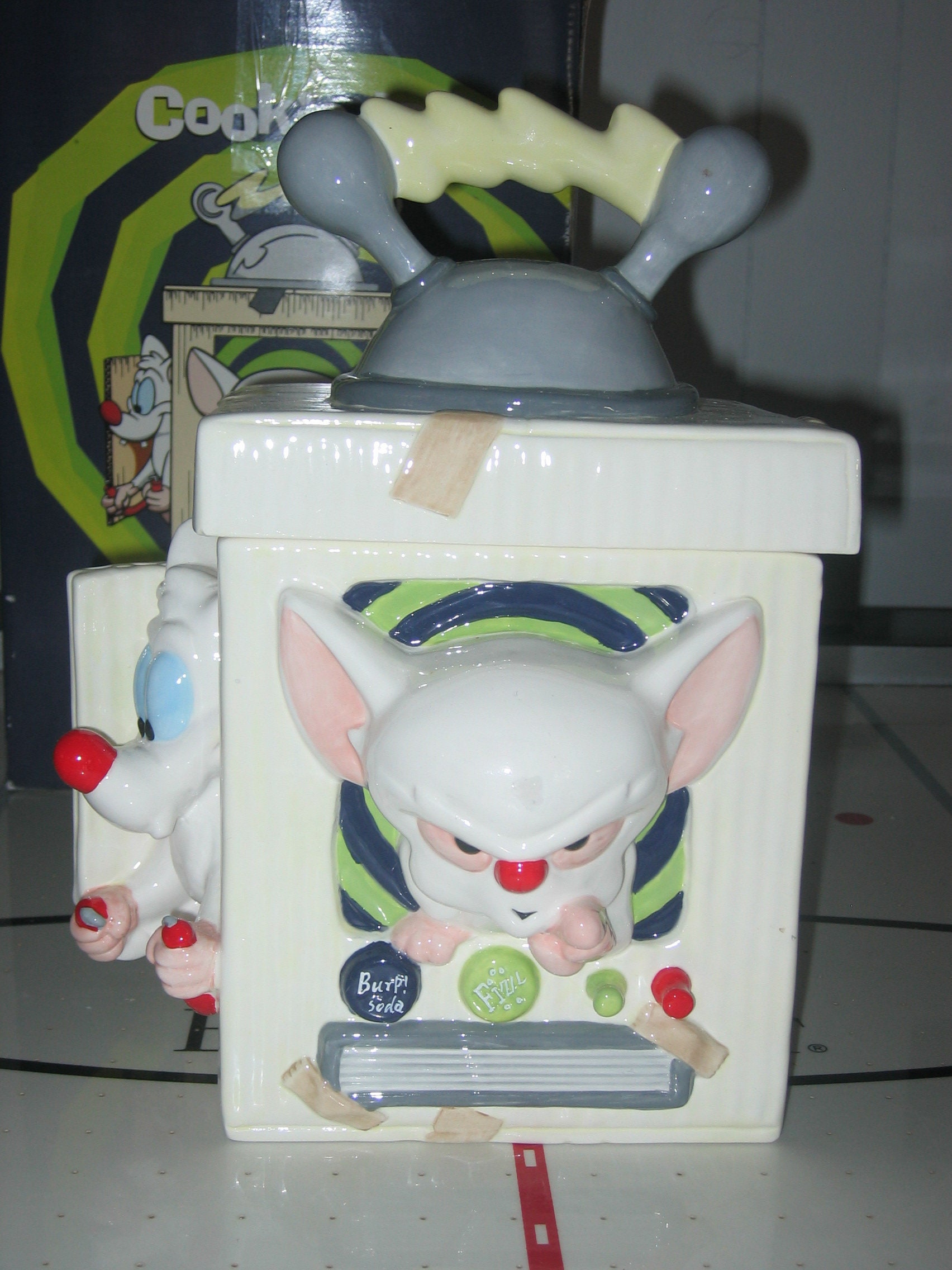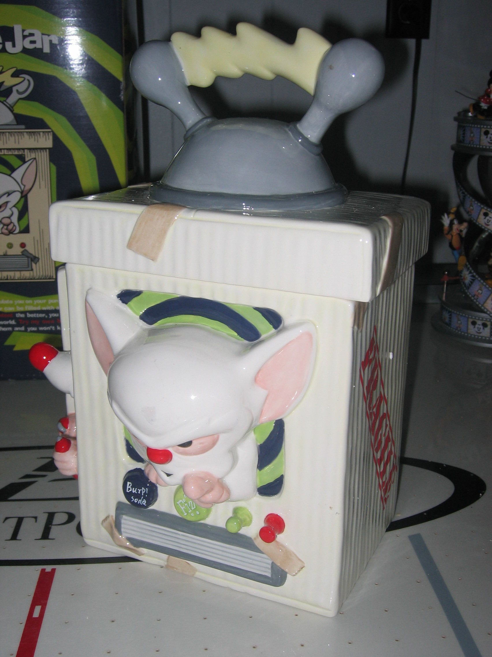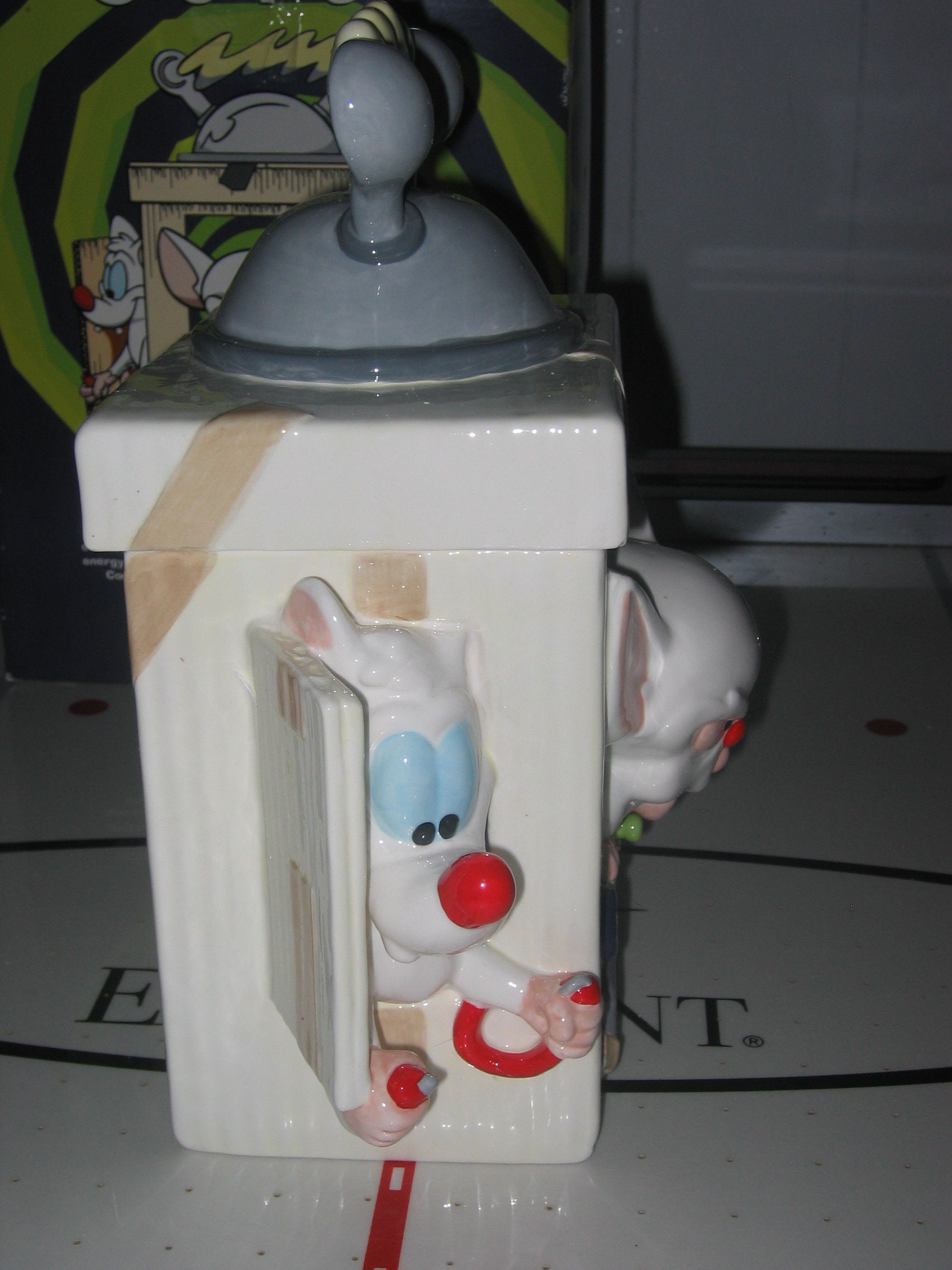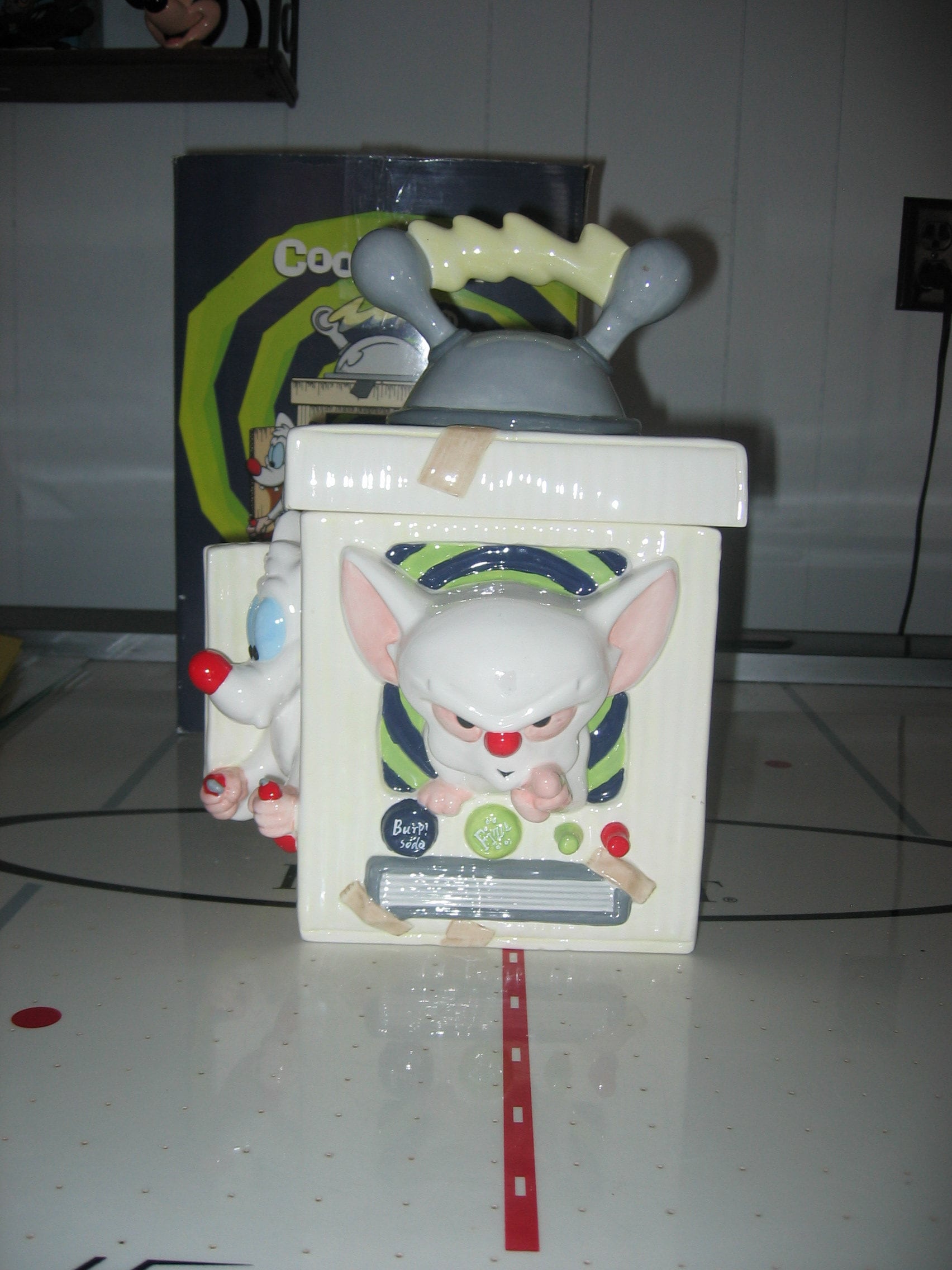 Look at this ! A Pinky and the Brain ceramic cookie jar, from 1996. From the old Warner Bros Studio Stores, this collectible from The Animaniacs crew is nice condition but no box this time. Packaged carefully and shipped free.