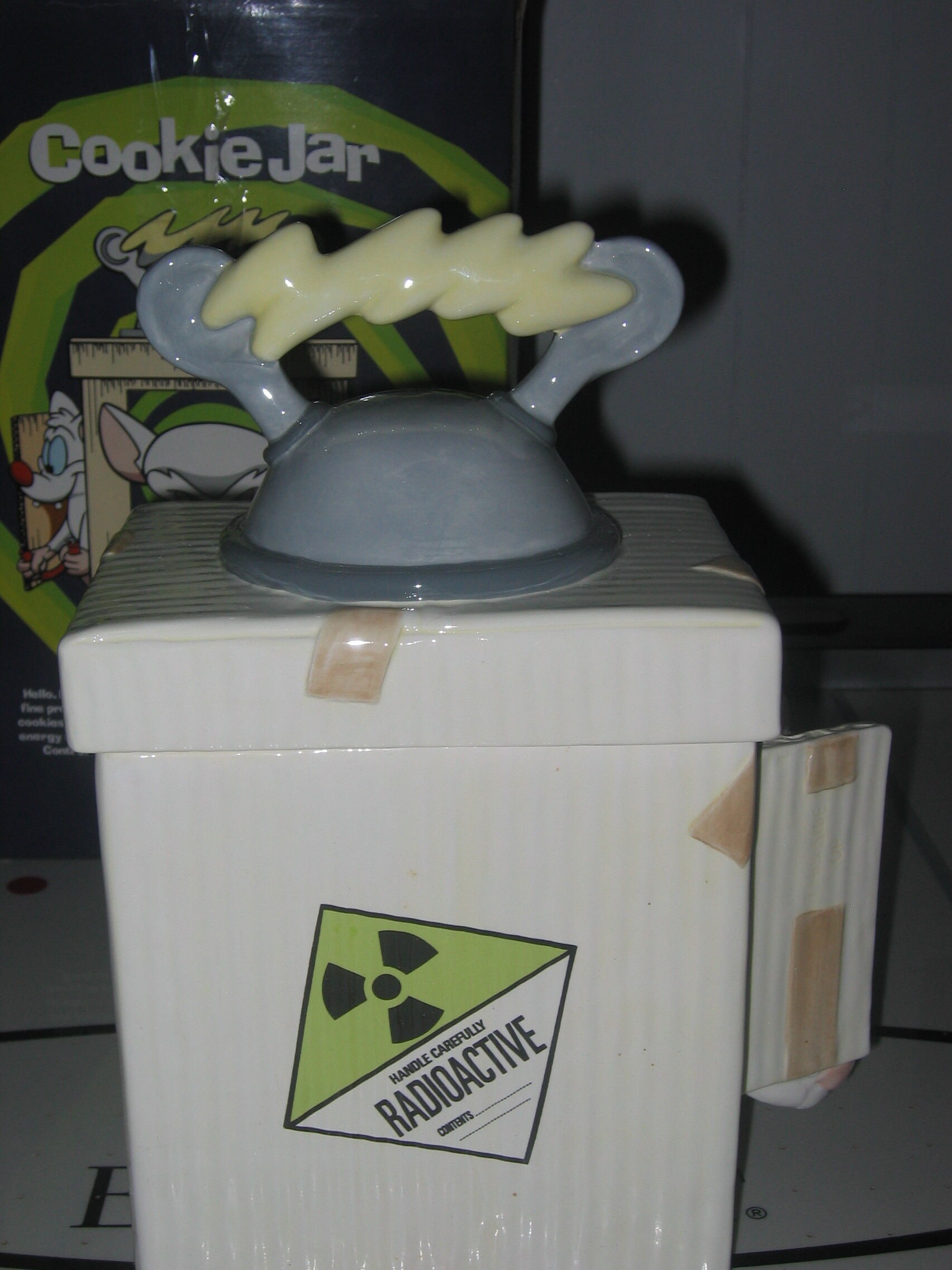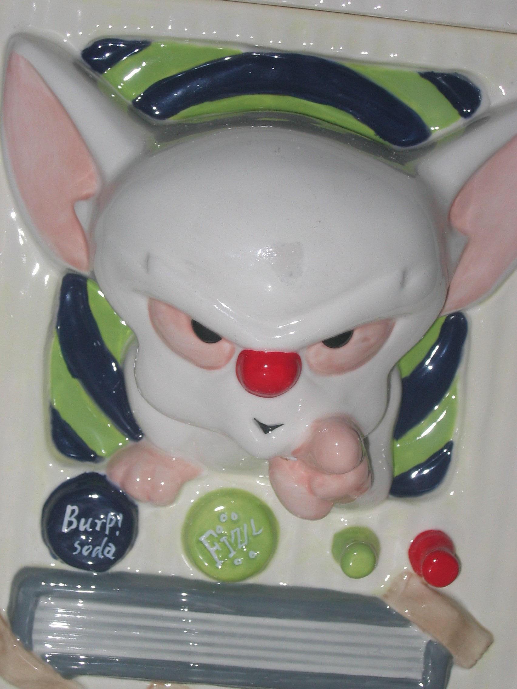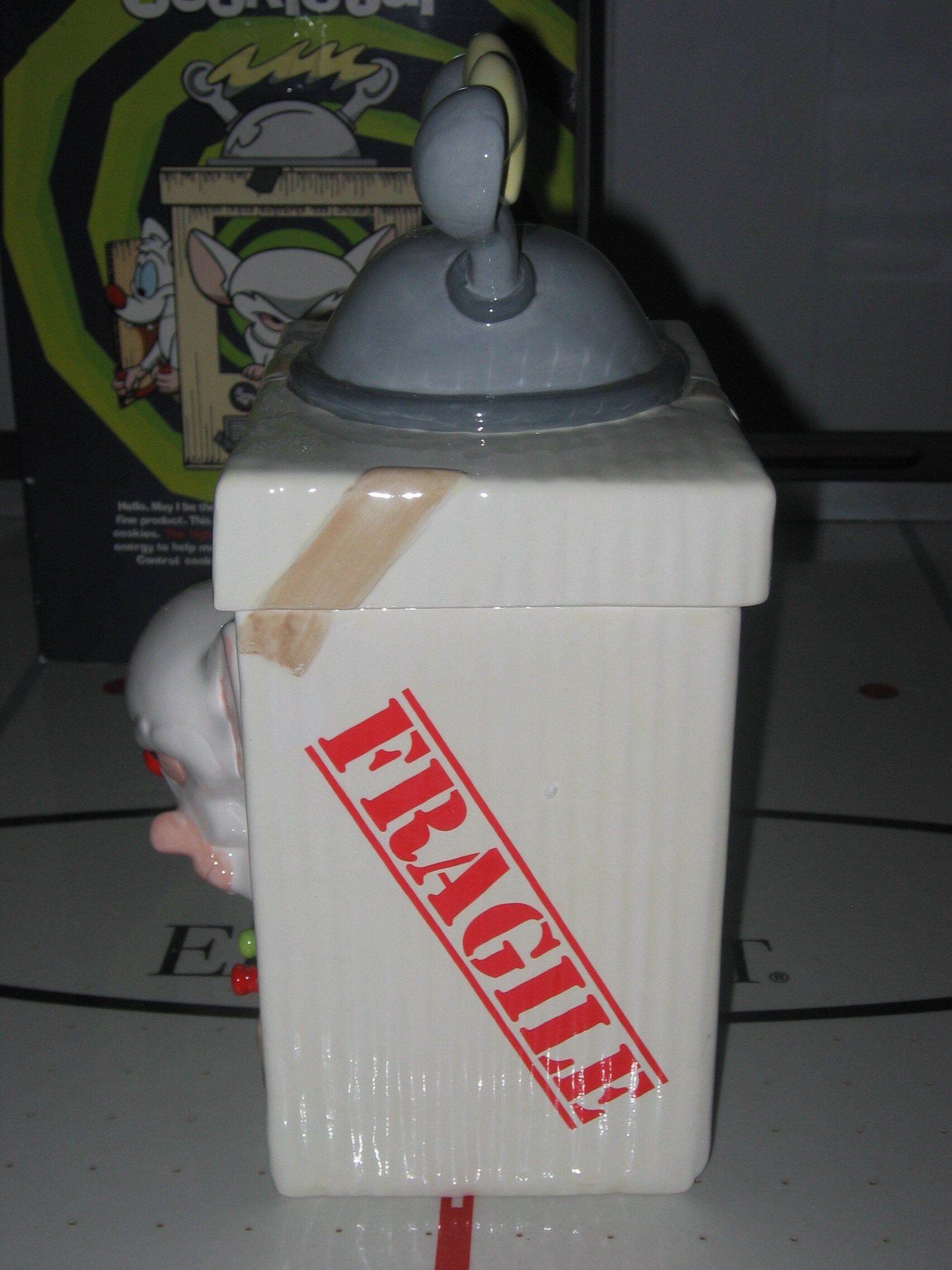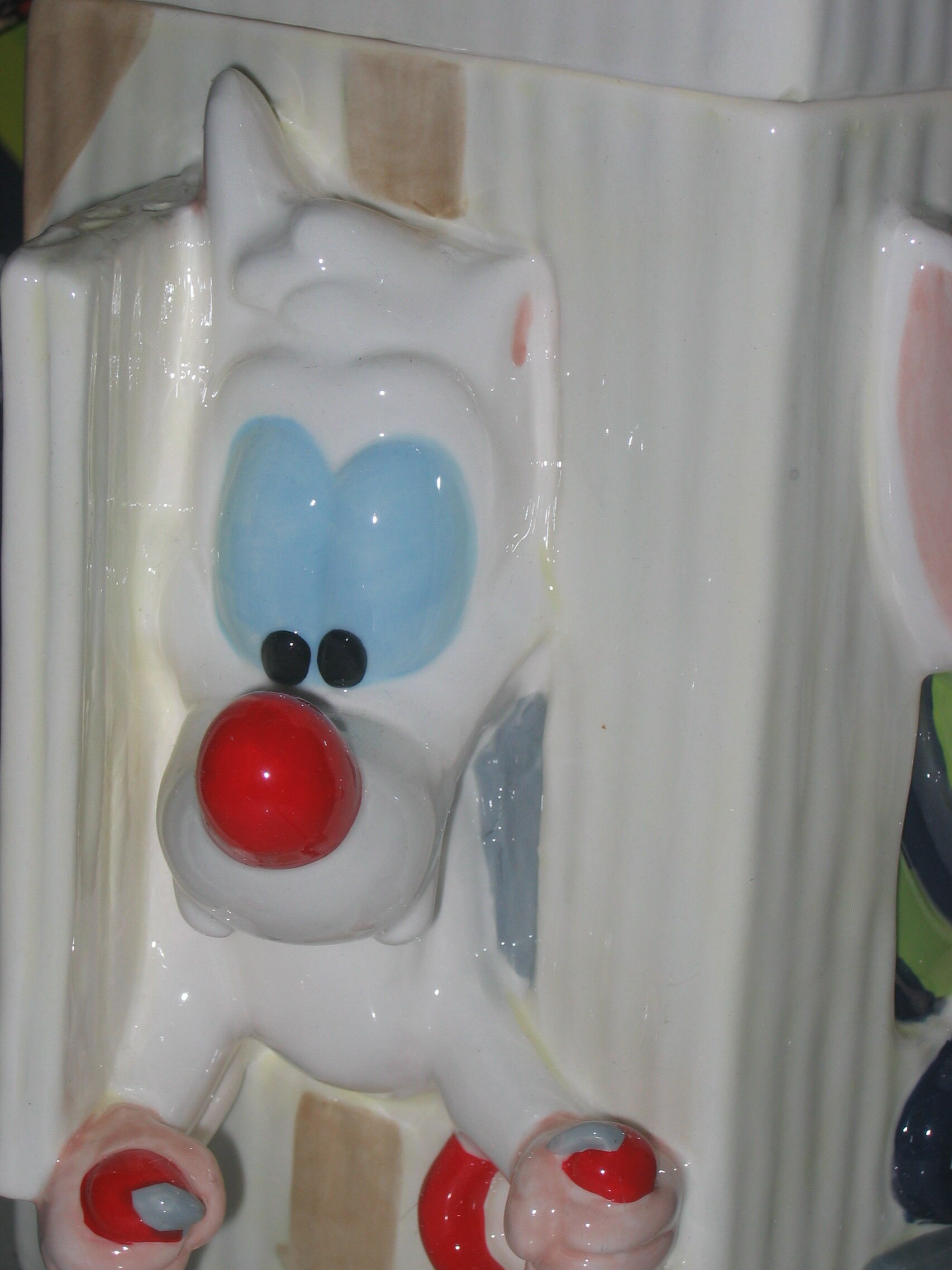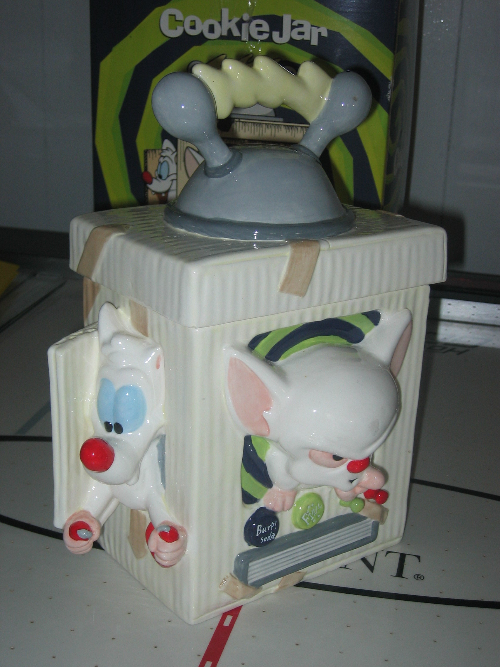 Look at this ! A Pinky and the Brain ceramic cookie jar, from 1996. From the old Warner Bros Studio Stores, this collectible from The Animaniacs crew is nice condition but no box this time. Packaged carefully and shipped free.